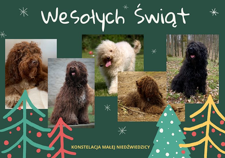 Kończący się rok nastraja nas do wspomnień i różnych przemyśleń. Bogactwo wydarzeń tych pięknych jak i też trudnych chwil pozostanie w naszych myślach na długo. Nasza Bajka ABAYA z Barbeciarskiej Chaty w mijającym roku ukończyła 12 lat, jej dzieci - miot F to już ośmiolatki. Kilku z nich w tym roku zostało ojcami wspaniałych szczeniąt. Jesteśmy bardzo dumni ze szczeniąt narodzonych w Danii w hodowli Good Spirit Barbets, których rodzicami są Hans FIGARO Konstelacja Małej Niedźwiedzicy i Nora NOOR ZHIVA von der Leibrucke (są to wnuki ULYSSE di Barbochos Reiau de Prouvenco i prawnuki jego brata URSUSa). Pełni optymizmu czekamy na kolejne potomstwo Hansa i FAIR Poppenspaler’s Nobles, które narodzi się w połowie stycznia w Holandii w hodowli Barboucles sur Meuse. Kolejną radość sprawił nam Bono FALKOR KMN - wraz z Emmą Nuphar’s Note To Self zostali rodzicami szczeniąt narodzonych w Austrii w hodowli du Quartier des Bois. I trzeci z braci Bruno FAZI KMN w tym roku został ojcem dwóch miotów narodzonych w Polsce w hodowli Paka Kudłaka i Beskidiana. Kolejne barbetowe piękności podziwialiśmy w hodowli Sabio Perro gdzie MERCEDES KMN została matka miotu C i MORIS KMN jest ojcem miotu D. Zachwycaliśmy się narodzinami szczeniąt w Szwecji w hodowli Helec’s, gdzie rodzicami są MORIS KMN i Irisens Assi Prinsess of Daim. Cieszą nas szczególnie wnuki Bajki, wnuki jej córki Fridy, jak też wnuki Hansa; trudno tu nie wspomnieć o pięknych szczeniakach narodzonych w Niemczech w hodowli Wookiebev gdzie ojcem został syn Hansa Luis VOLCANO OPTYMIST Sabio Perro.